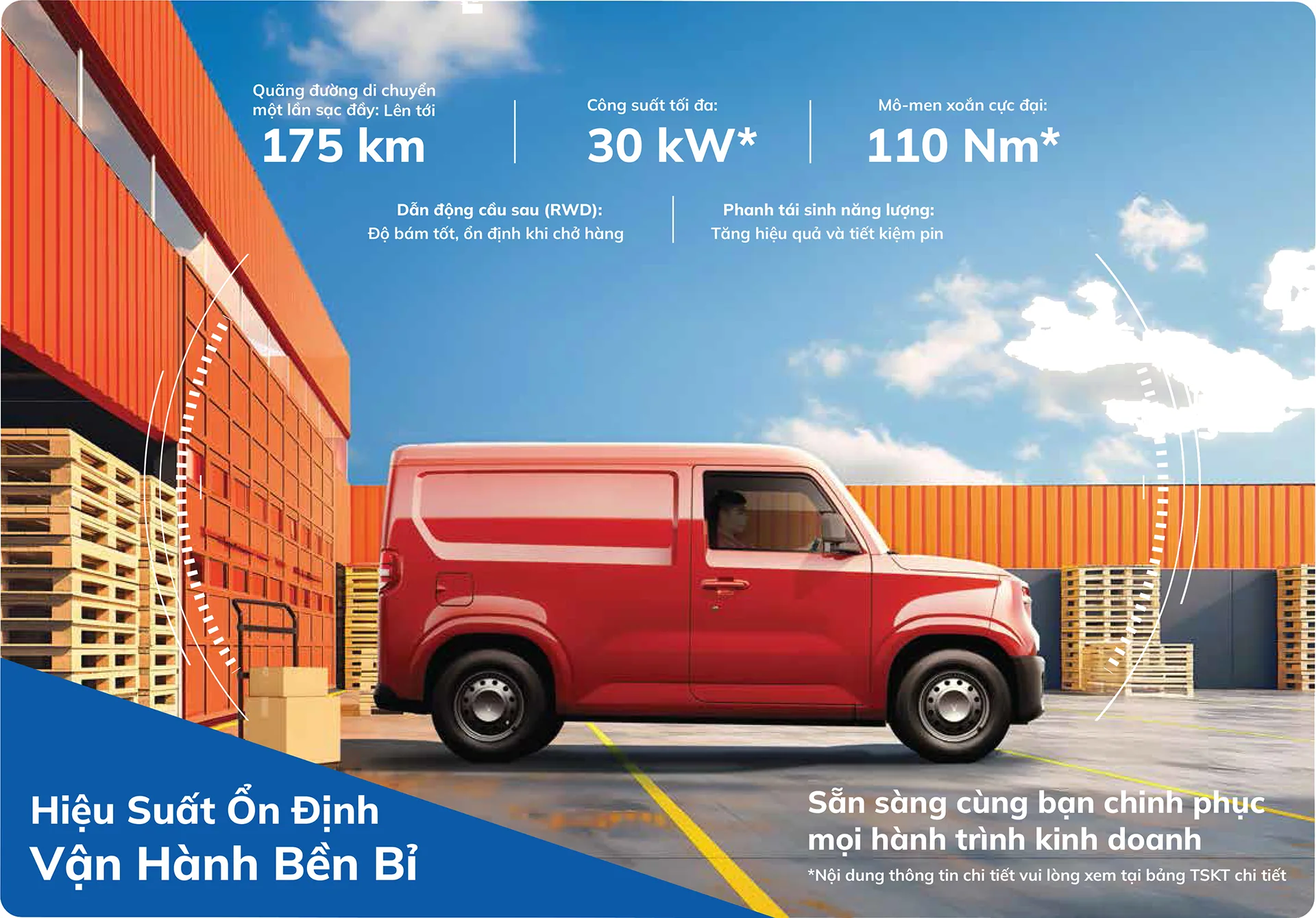 EC Van có thiết kế nhỏ gọn phù hợp với mọi không gian và điều kiện đường sá từ thành thị đến nông thôn. Xe có thiết kế khoang lái 2 chỗ ngồi cùng khoang hành lý phía sau với dung tích chứa hàng lên tới 2.600L, tải trọng 650 kg, tối đa hóa năng suất vận chuyển trong từng chuyến đi.